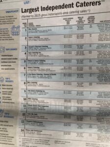 The Indiana Business Journal recently ranked us third (of 14) of the top caterers in the Indianapolis area!